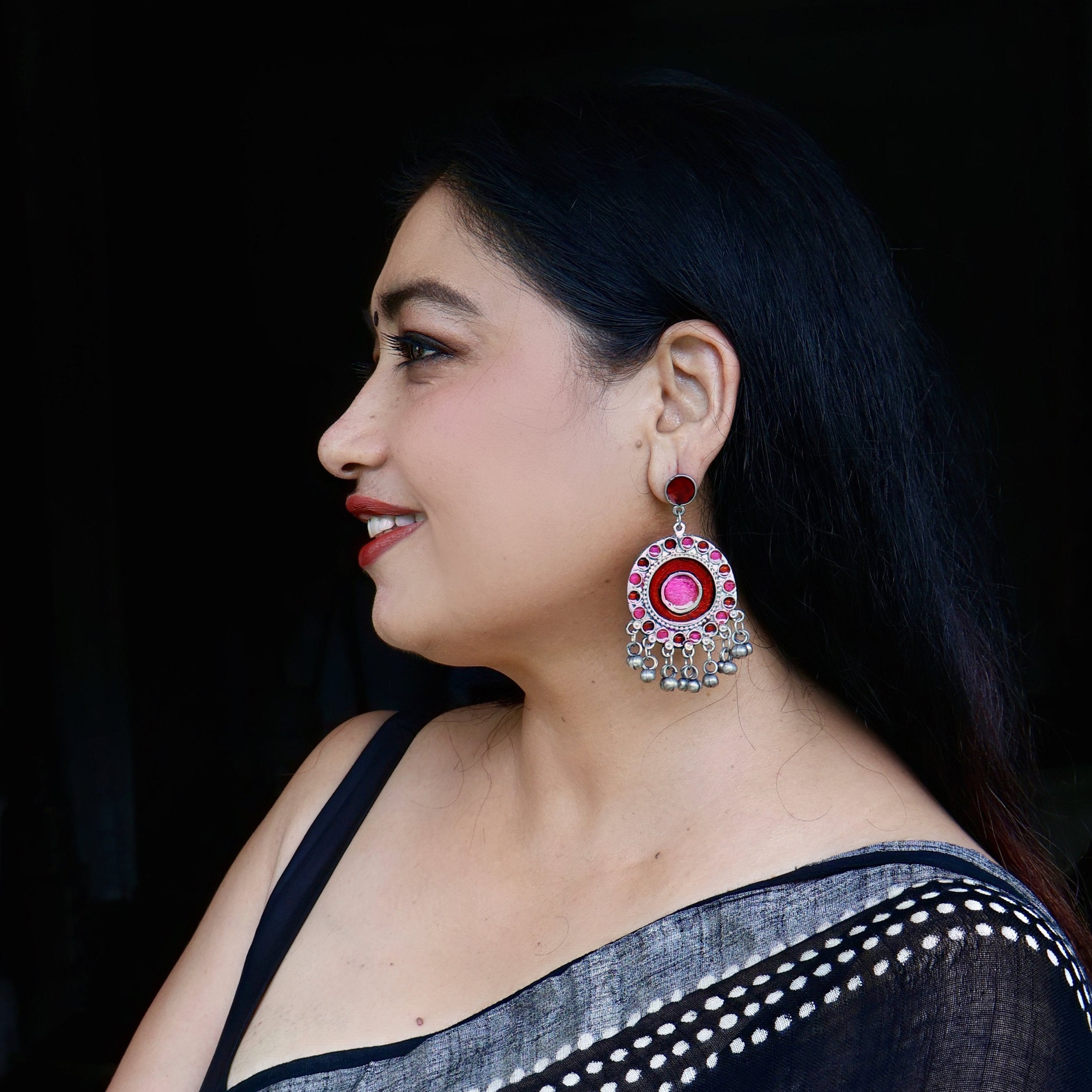 Expertly crafted for Navratri, these Afghani Pink Earrings from Gulabiya add a touch of vibrancy and elegance to your traditional attire. Each earring boasts intricate details and a stunning pink hue, making them the perfect accessory for any festive occasion. Elevate your look with these stunning earrings.