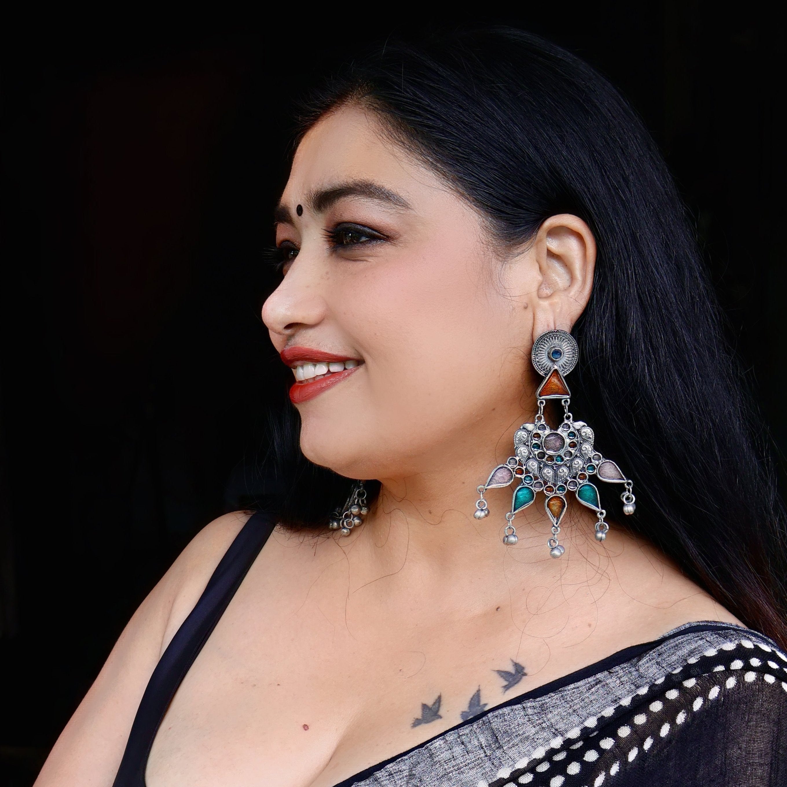 Crafted intricately with oxidised silver, Saloni brings to you Jewellery Oxidised Afghani Tribal Earrings for Girls and Women. Perfect for everyday wear, these earrings are designed to add a touch of tribal charm to any outfit. Elevate your style with these unique and versatile earrings.