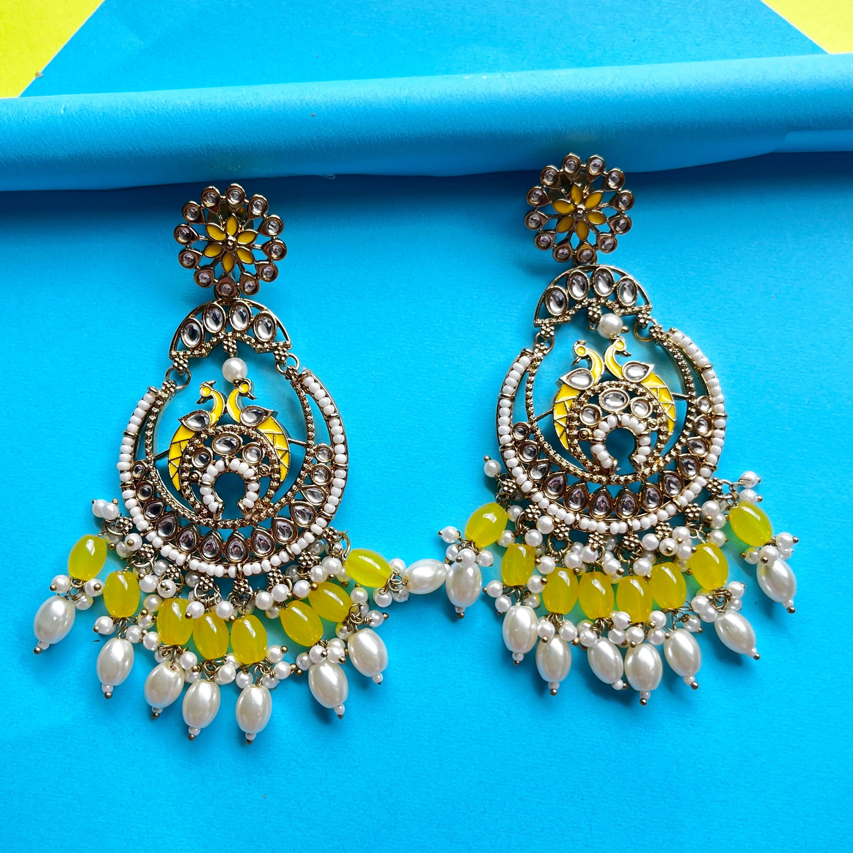 This offer promotes a limited-time deal where customers can buy 2 pairs of earrings for ₹1500. The image showcases two exquisite earring designs, both featuring a traditional and festive appeal: