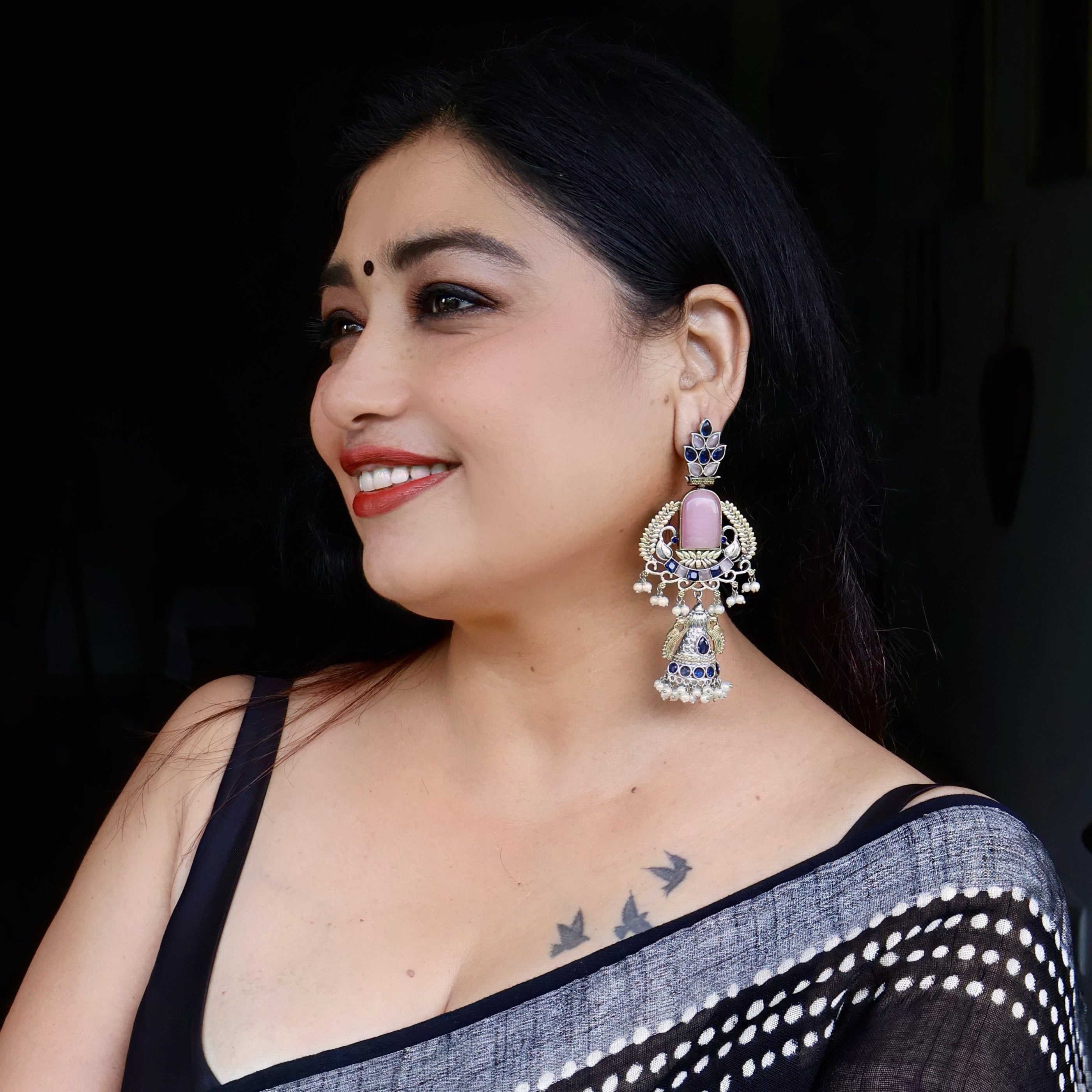 These Sahiba- Blue and Pink Stone Dual Tone Earrings are a perfect blend of elegance and style. The dual tone design adds a unique touch, while the blue and pink stones bring a pop of color. Crafted with quality materials, these earrings are both durable and beautiful. Elevate any outfit with these stunning earrings.