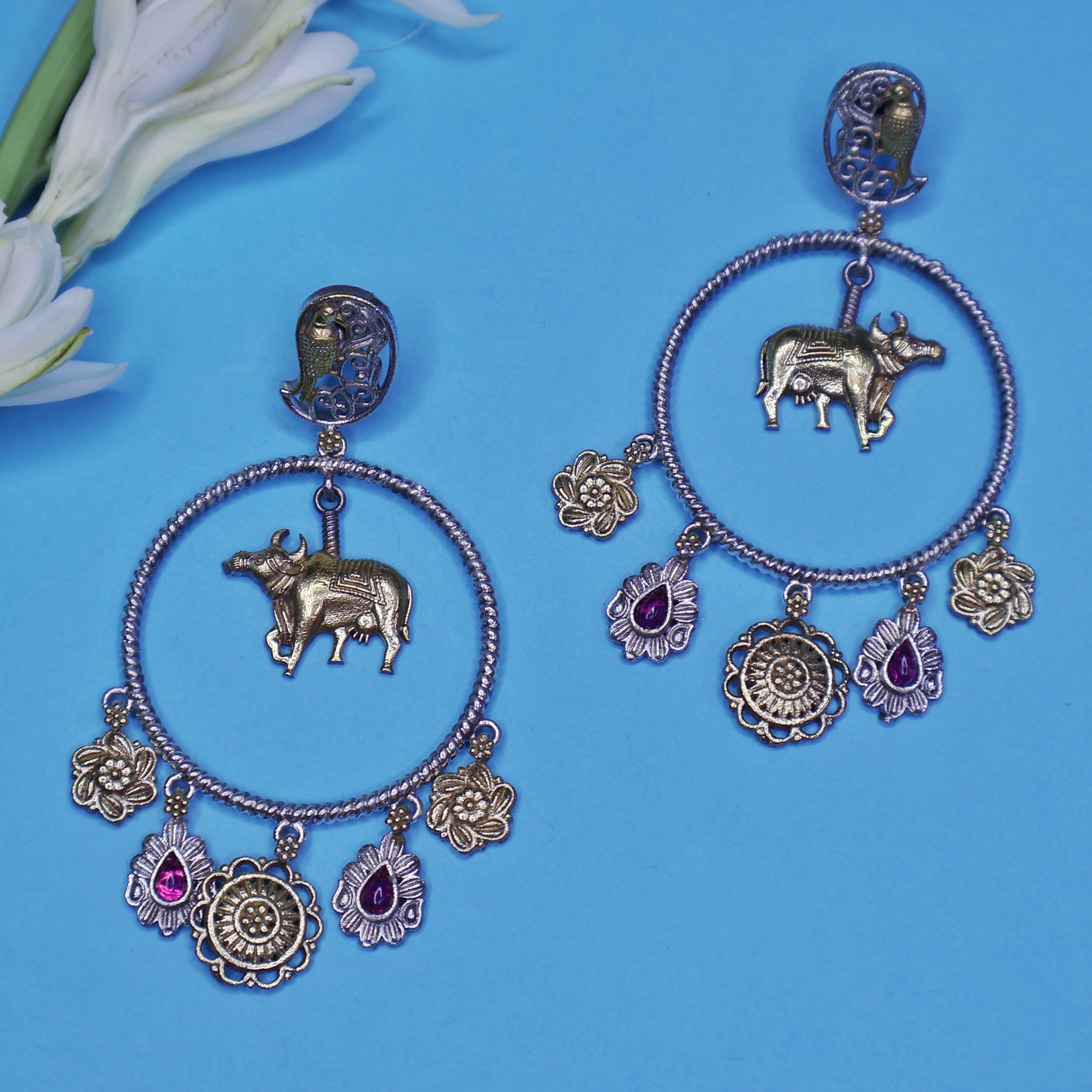 Experience traditional elegance with Shailja- Dual Tone Nandi Earrings. Crafted with attention to detail, these earrings feature a stunning dual tone design that adds a touch of sophistication to any outfit. Made with high-quality materials, they offer a timeless appeal and unmatched durability.