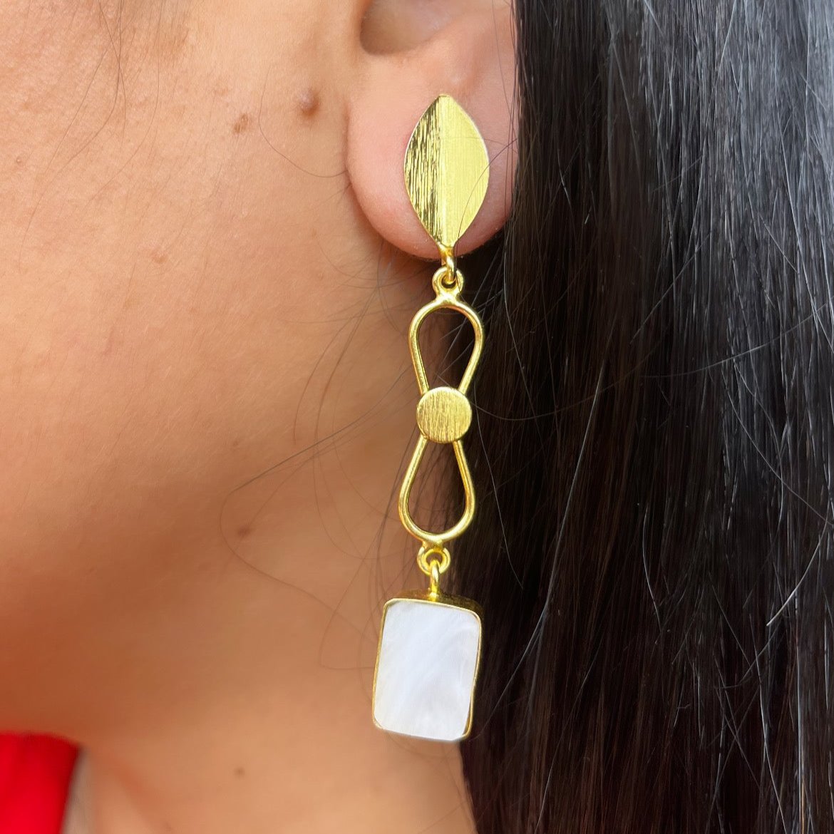 Elevate your style with Tarini GOLDEN RECTANGLE MOP EARRINGS. Made with genuine mother of pearl, these earrings are the perfect blend of elegance and modern design. Enhance any outfit with their unique golden rectangular shape and luxurious material. Upgrade your jewelry collection with the Tarini MOP EARRINGS.