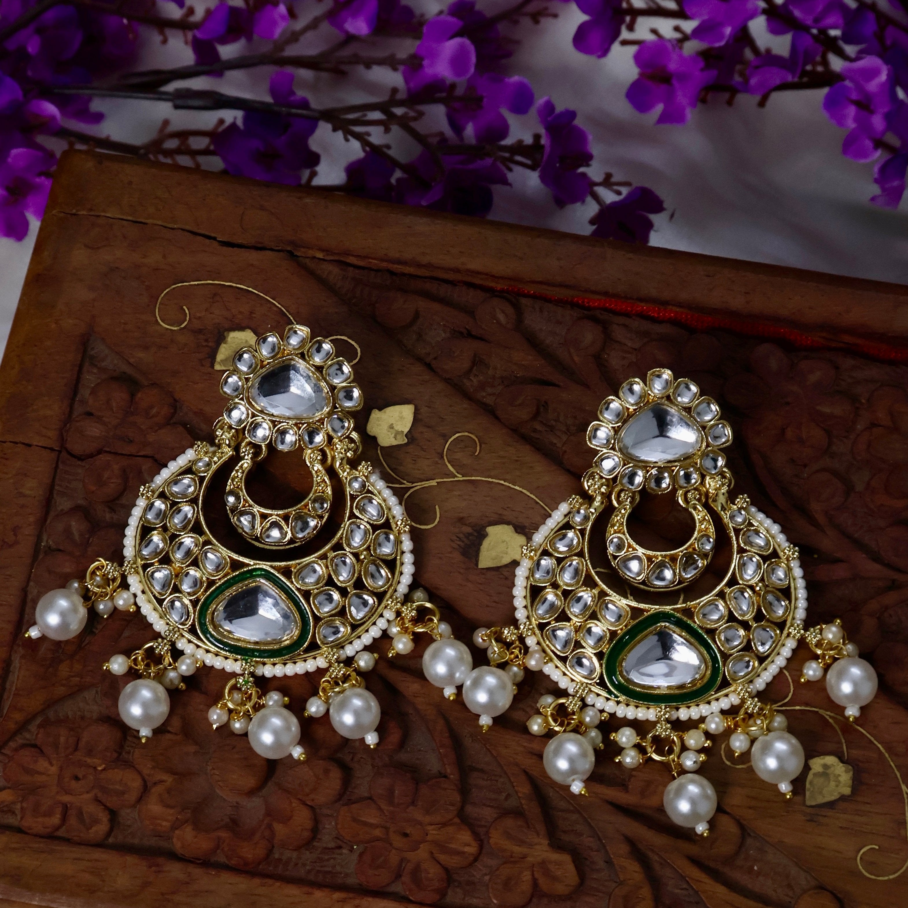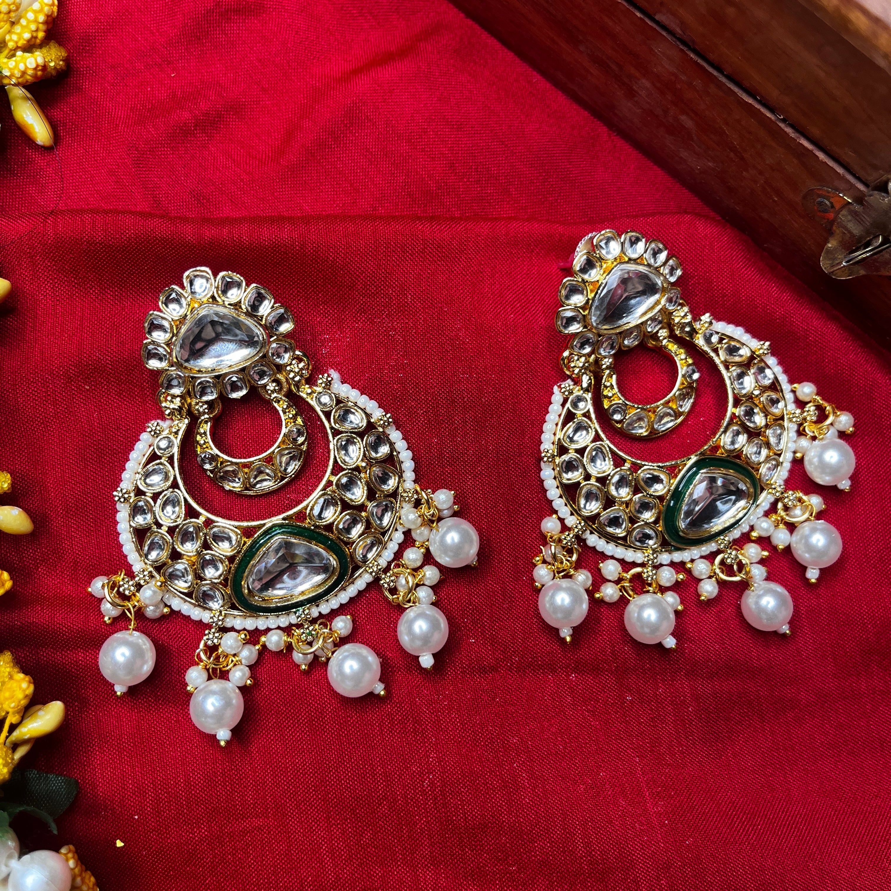 Introducing our White Kundan Earrings, crafted with precision and elegance. Made with pristine white Kundan stones, each earring exudes sophistication and timeless beauty. Perfect for adding a touch of glam to any ensemble. Elevate your style with our White Kundan Earrings.